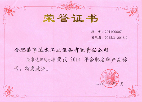 據(jù)悉,榮事達從事凈水行業(yè)10年,始終將質(zhì)量作為企業(yè)生存和發(fā)展的原動力,注重計量、標準、認證認可、檢驗檢測等質(zhì)量基礎建設,嚴格把控生產(chǎn)經(jīng)營全過程,逐步建立公司測量管理體系并順利通過認證審核,以實際行動確保產(chǎn)品質(zhì)量,保證消費者實際權益。此次榮事達牌純水機榮獲2014年合肥名牌產(chǎn)品稱號,是合肥市政府對榮事達水工業(yè)公司一直以來重視產(chǎn)品質(zhì)量工作的高度認可。