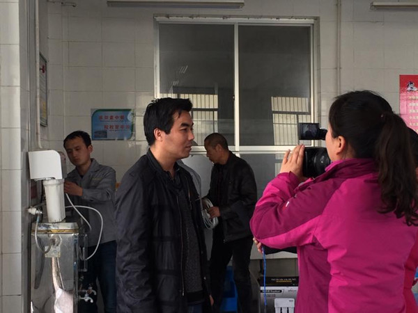 據(jù)了解,富平縣特殊教育學(xué)校共有師生200多人,大部分學(xué)生為聽(tīng)障、智障兒童,由于學(xué)校是寄宿制,那里的大部分孩子吃住都在學(xué)校。然而,由于當(dāng)?shù)刈詠?lái)水水堿十分嚴(yán)重,學(xué)校開(kāi)水器經(jīng)常出現(xiàn)被堵塞的狀況,學(xué)生們?nèi)粘o嬎щy重重。