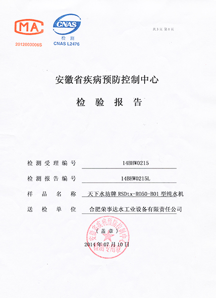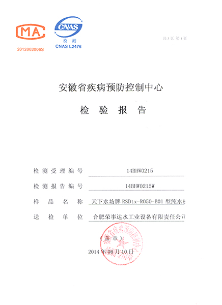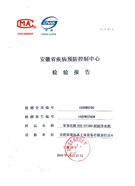 RSD-UF500超濾凈水機(jī)檢驗(yàn)報(bào)告... -