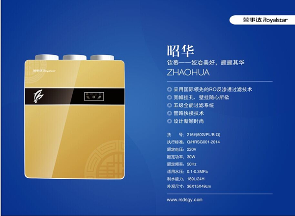 金秋,是碩果累累、滿載喜悅的季節(jié)。榮事達水工業(yè)公司繼“梅蘭竹菊”中國風主題系列產(chǎn)品之后再度創(chuàng)新突破,隆重推出了新品——“昭華”凈水機。