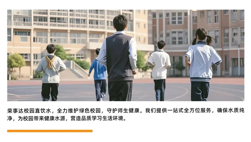 榮事達校園直飲水已為全國眾多幼兒園、小學、中學以及大學帶去健康好水,贏得了師生青睞。榮事達校園直飲水還可根據(jù)每所學校的具體需求量身定制直飲方案。從需求分析、方案設計、設備選型到安裝調試、后期運維,榮事達提供了一站式、全方位的服務,確保了直飲水項目的順利實施與高效運行。