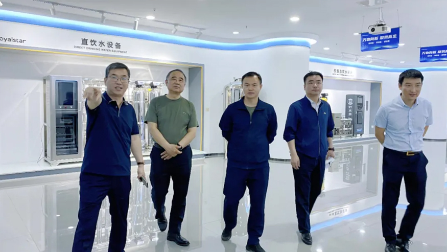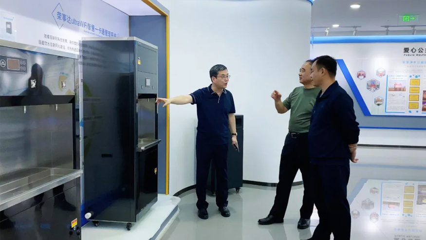 領(lǐng)導(dǎo)一行參觀了解集團的全屋智慧凈水項目、社區(qū)智慧飲水項目以及校園直飲水項目等。