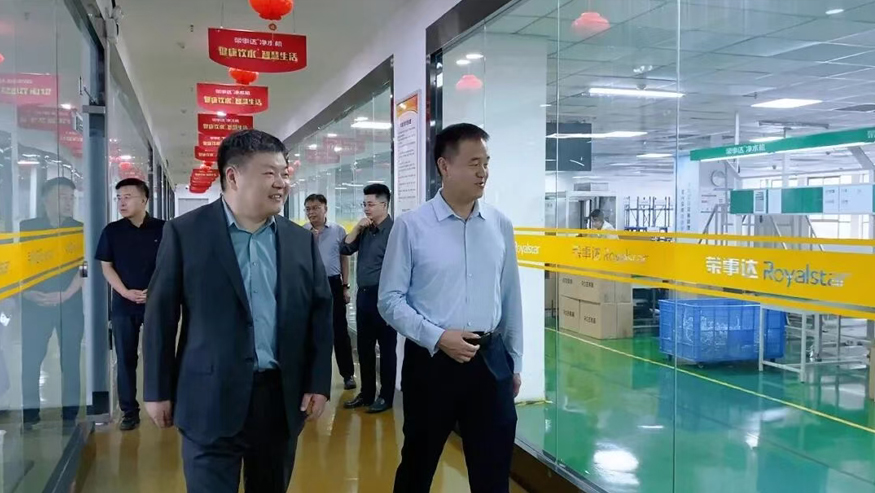 領(lǐng)導(dǎo)一行先后參觀榮事達家用凈水生產(chǎn)車間,七大品控實驗室,智慧水世界體驗展廳,了解集團的發(fā)展歷程,公益事業(yè)及黨建引領(lǐng)下的企業(yè)文化等。