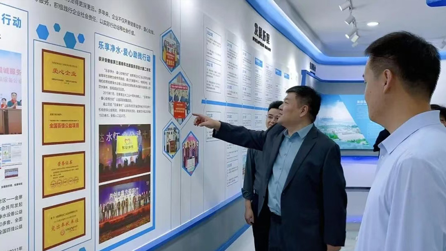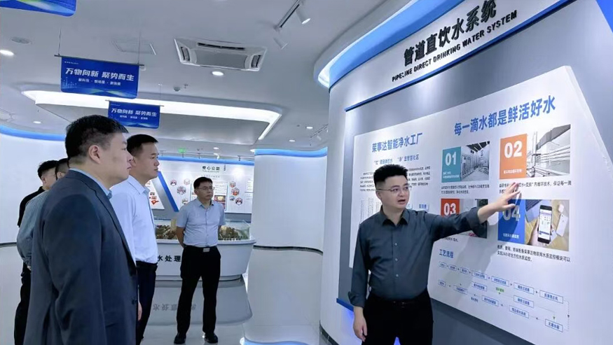 領(lǐng)導(dǎo)一行參觀了解集團全屋智慧凈水、管道直飲水、校園智慧飲水、單位/工廠直飲水等項目,實現(xiàn)凈水行業(yè)全領(lǐng)域項目發(fā)展。