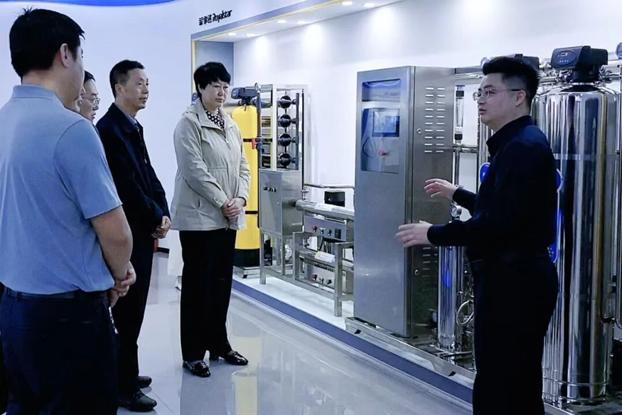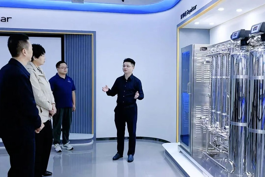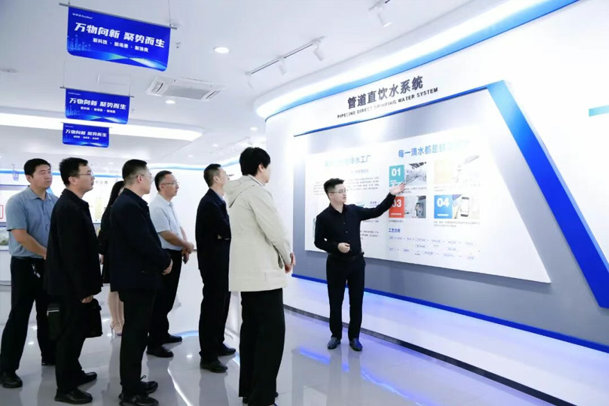 領(lǐng)導一行參觀公司全屋智慧凈水、管道直飲水、校園智慧飲水、單位/工廠直飲水等項目,了解公司在凈水行業(yè)全領(lǐng)域的發(fā)展情況。