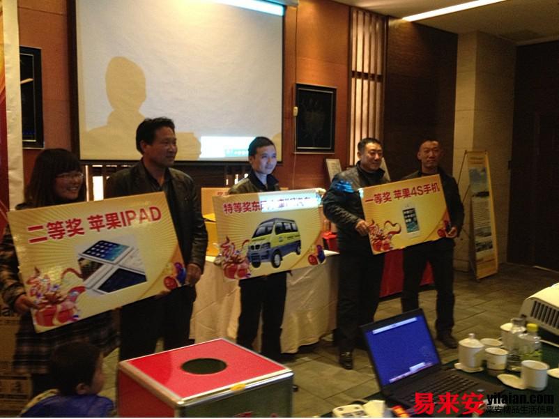 會(huì)議還安排了訂貨抽獎(jiǎng)環(huán)節(jié),東風(fēng)汽車、iphone4s、ipad、格蘭仕滾筒洗衣機(jī)等豐厚的獎(jiǎng)品激發(fā)了與會(huì)經(jīng)銷商的訂貨熱情。一位來自天長的新客戶場(chǎng)訂貨達(dá)37萬 ,幸運(yùn)抽中汽車大獎(jiǎng)。