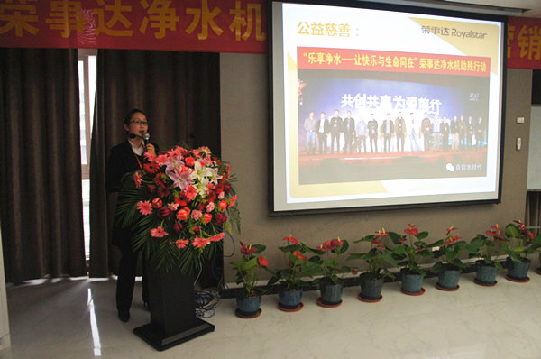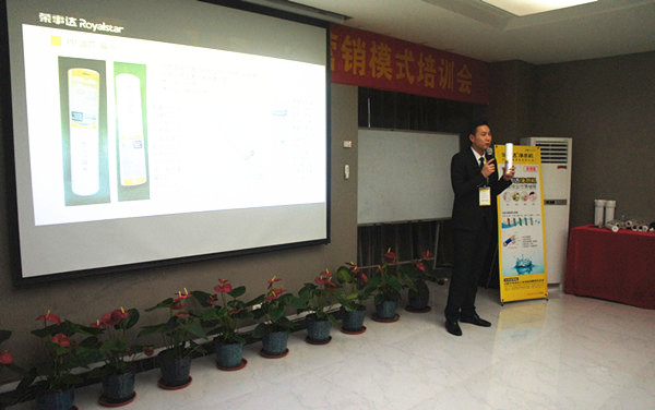 榮事達著力打造產(chǎn)品力,推出2016系列暢銷新品,助力客戶致勝終端。在此次暢銷產(chǎn)品培訓講座上,開發(fā)部董部長為客戶解析了暢銷新品賣點,R8櫥下智能純水機以黑、金為主色調(diào),尊貴大氣,產(chǎn)品采用LED智能顯示、自動化沖洗功能、防漏水技術、以及新型韓式龍頭,亮點頗多;箱體LED純水機采用“無壓力罐”構造、“一體式龍頭”設計,櫥上櫥下可隨心安置;速熱飲水機超薄小巧、三秒即熱,并能實現(xiàn)多檔水溫和水量調(diào)節(jié),方便、實用、美觀。會上,董部長將榮事達凈水機所采用的膜、壓力桶、泵、龍頭等配件與其他廠家的產(chǎn)品進行比較,從產(chǎn)品質(zhì)量、安裝拆卸便攜性、用戶使用體驗等多個方面突出了榮事達凈水機的質(zhì)量和性能優(yōu)勢。