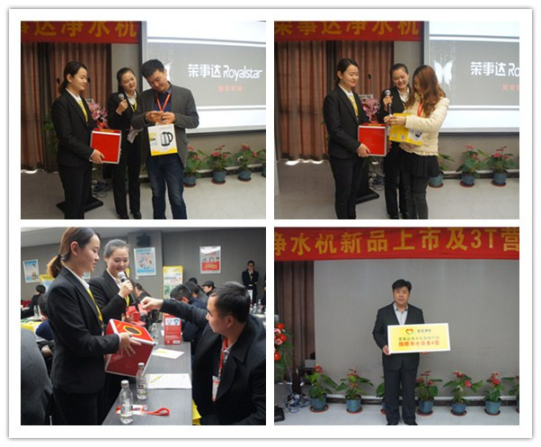 為應對2016凈水市場快速發(fā)展的要求,榮事達精心推出R8櫥下智能純水機、箱體LED純水機、速熱飲水機等多款新品,適應細分市場需求,助力終端網(wǎng)點提高市場占有率。在隨后的新品培訓環(huán)節(jié),榮事達渠道開發(fā)部王部長和董部長對新品功能特點、市場定位進行了詳細講解。新款純水機配備RO反滲透技術及五級過濾系統(tǒng),融智能顯示、自動化沖洗、防漏水設計于一體,并為用戶提供了櫥上、櫥下安置的不同選擇;新款飲水機采用厚膜加熱管原理,三秒即熱,并可實現(xiàn)多檔水溫水量調節(jié),使得家庭飲水更方便。新品踐行了榮事達產(chǎn)品定制的研發(fā)理念,類型多樣,既包含了可攻克農(nóng)村地區(qū)水壓不足不穩(wěn)狀況的自吸增壓凈水機,也囊括了滿足城市居民追求健康時尚消費需求的高端機型,參會客戶通過了解,紛紛表示定制新品市場定位準確,前景極為廣闊。