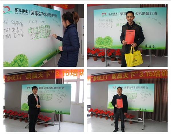 與會的許多意向客戶在一天半的觀摩、學習中,了解了榮事達水工業(yè)公司的過硬的軟、硬實力,見證了榮事達凈水機卓越的產品質量和完善的售后保證,更感受了公司作為凈水名企的品牌信譽、行業(yè)地位、社會擔當。會后,近九成意向客戶立即簽訂了合作協(xié)議,與榮事達攜手合作。為了酬謝廣大客戶,榮事達精心準備了四輪抽獎環(huán)節(jié),多款精美禮品悉數(shù)送出。其中,20多位合作客戶在終極大獎環(huán)節(jié)幸運抽得公司精心準備的4套凈水設備,用于開展“樂享凈水”助殘行動。