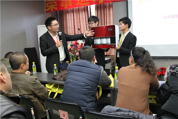 產(chǎn)品是終端營(yíng)銷的基石,榮事達(dá)推出箱體LED純水機(jī),渠道發(fā)展部劉總對(duì)產(chǎn)品進(jìn)行了講解。外觀上,產(chǎn)品以大紅色為主色調(diào),弧形立式設(shè)計(jì)更精致美觀上檔次。功能上,產(chǎn)品增壓、自吸可一步到位,有效攻克水壓不足、不穩(wěn)問(wèn)題;配置先進(jìn)RO反滲透膜,五級(jí)過(guò)濾系統(tǒng),凈化功能卓越;LED智能顯示,運(yùn)行狀態(tài)一目了然等。此次會(huì)議,公司還推出高端智能凈水機(jī),滿足消費(fèi)者的不同需求。