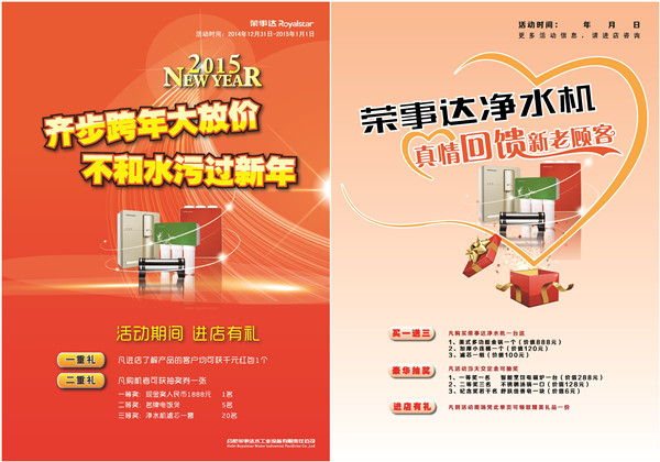 又至歲末,辭舊迎新,榮事達跨年獻禮,感恩回饋,再掀凈水狂潮。 回首2014,居民飲水安全頻頻告急,安裝家用凈水機實現(xiàn)“純凈水自己造”,構筑飲水安全...
