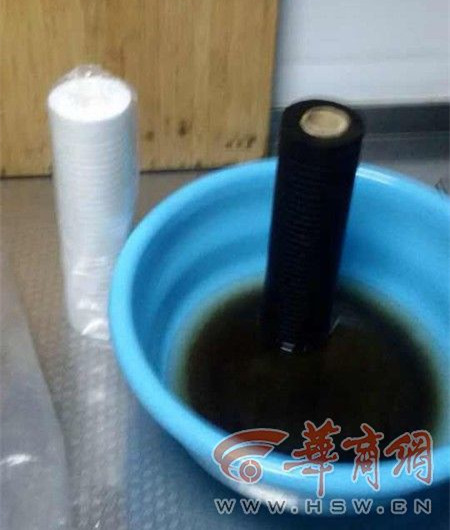 該小區(qū)多家住戶使用的是同一品牌的凈水器,該凈水器廠家一負責人解釋,凈水器都有前置濾芯和后置濾芯,一般都是建議6個月更換一次前置濾芯?!罢8鼡Q下來的顏色應該是微微發(fā)黃或鐵銹紅?!痹撠撠熑苏f,但小楊家的前置濾芯更換下來卻是黑巧克力色,而且摸上去是油泥狀的物質(zhì)。